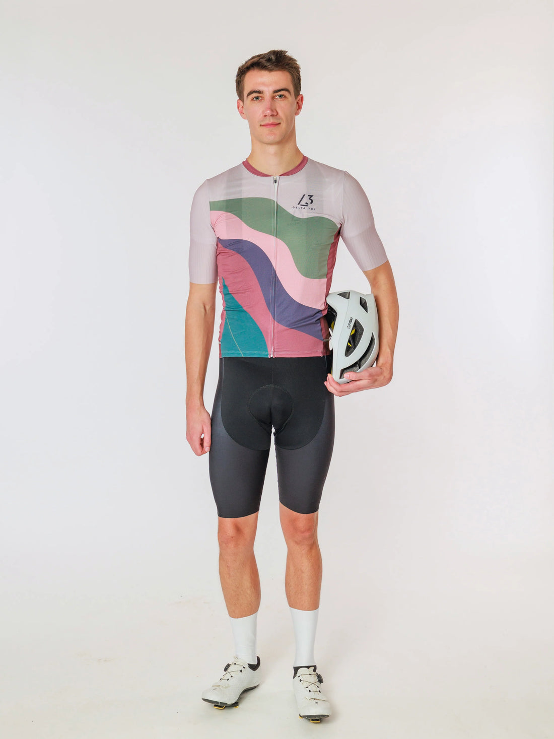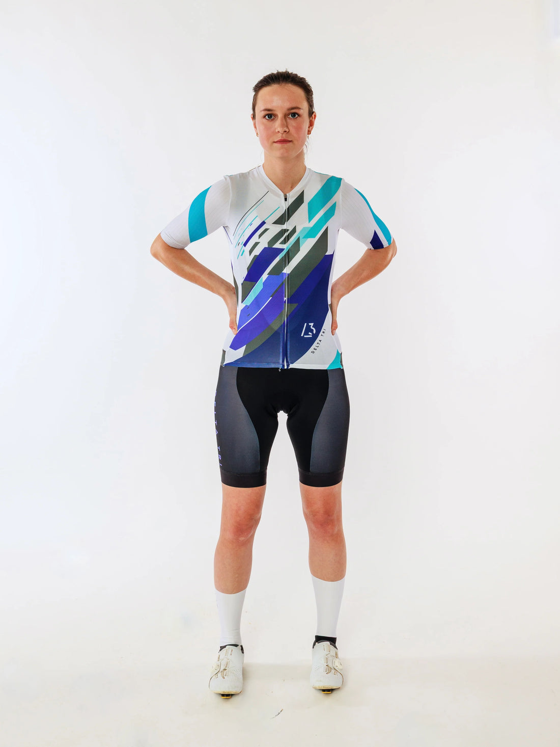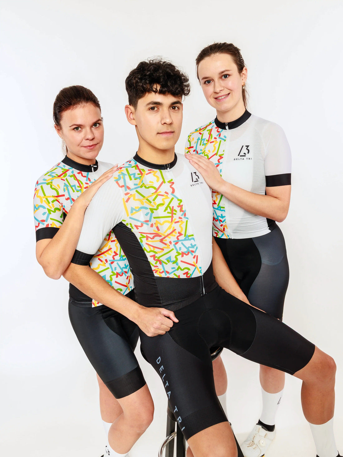 Das Cycling Kurzarm-Trikot Signatur Edition in Weiß mit farbigen DeltaTri Logos steht für einen besonders...