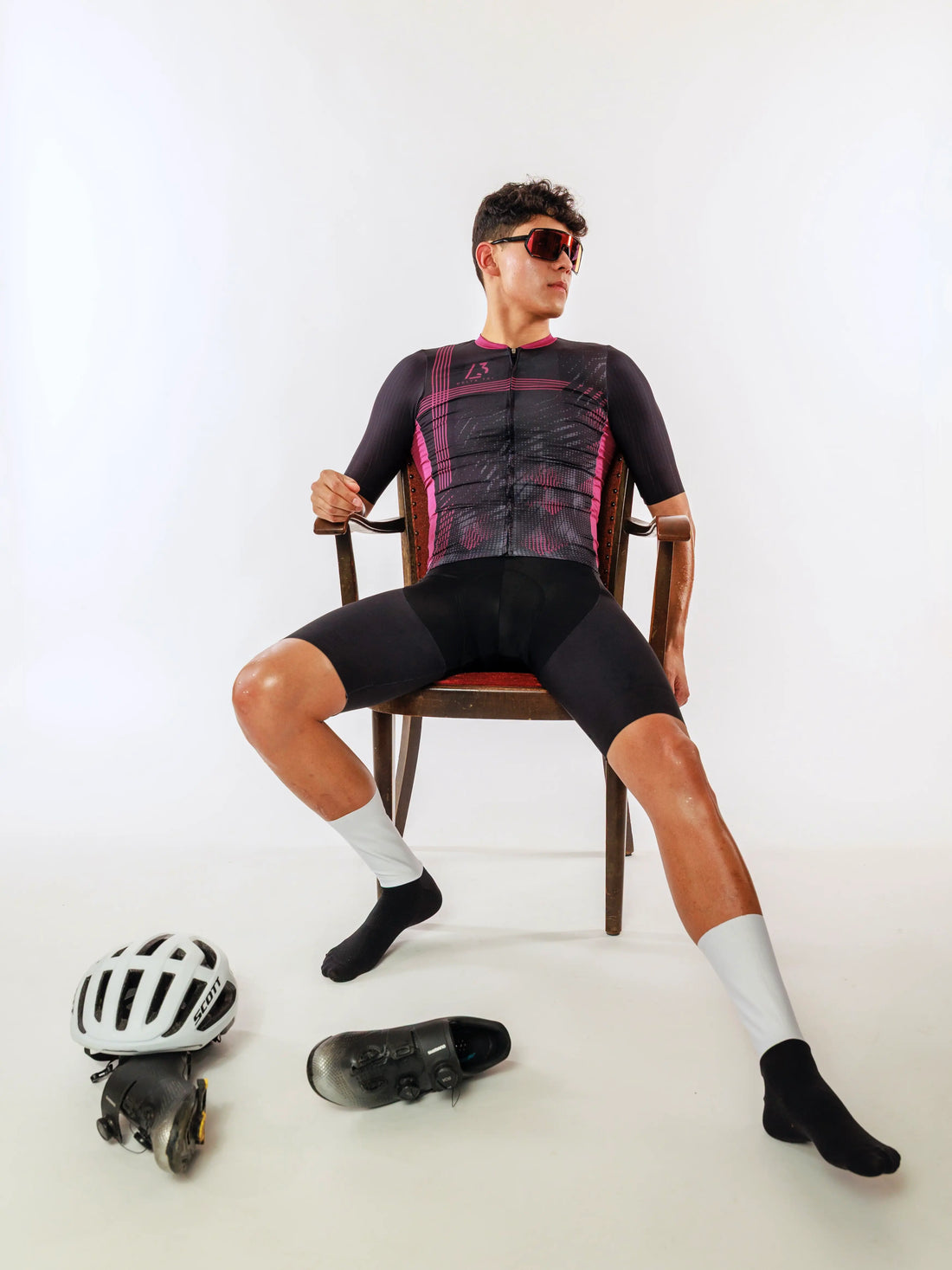 Das Cycling Kurzarm-Trikot in Schwarz mit pinken Linienakzenten steht für eine besonders hochwertige, sportlich-elegante Optik...