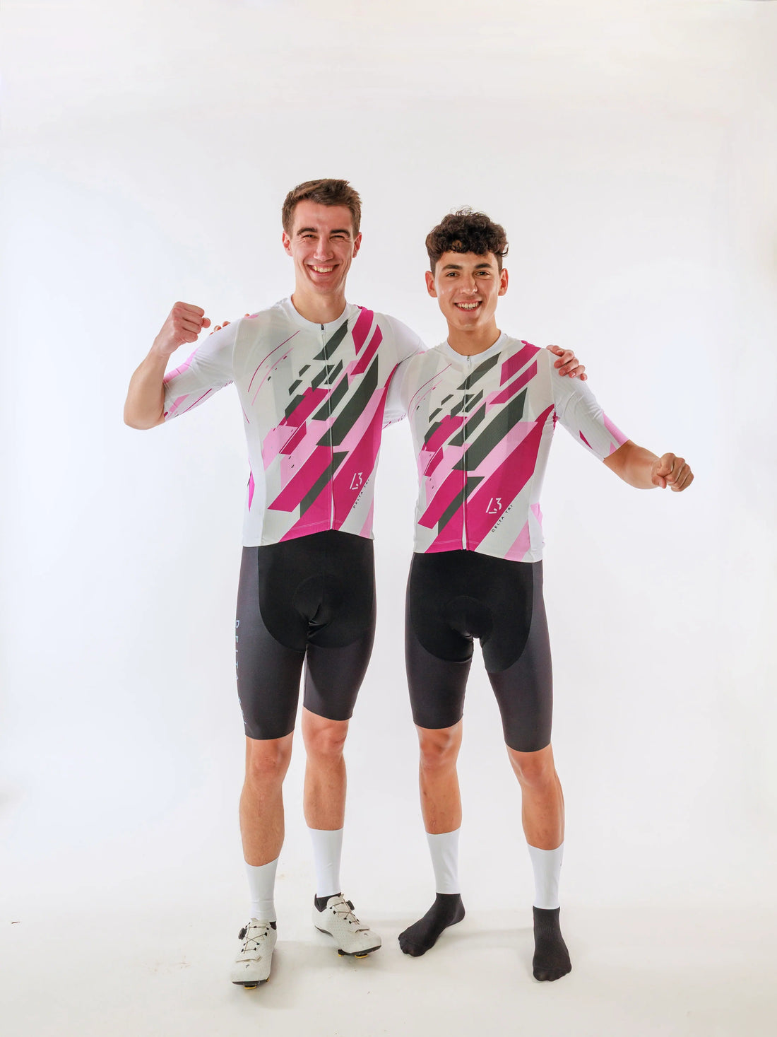 Das Cycling Kurzarm-Trikot Grid Edition in Weiß mit rosa und pinken Rechtecken verbindet klare Linien...